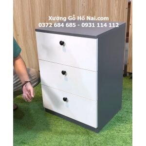 Tủ đầu giường gỗ 3 ngăn nắp trắng