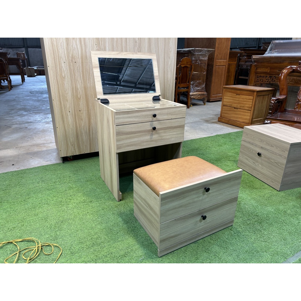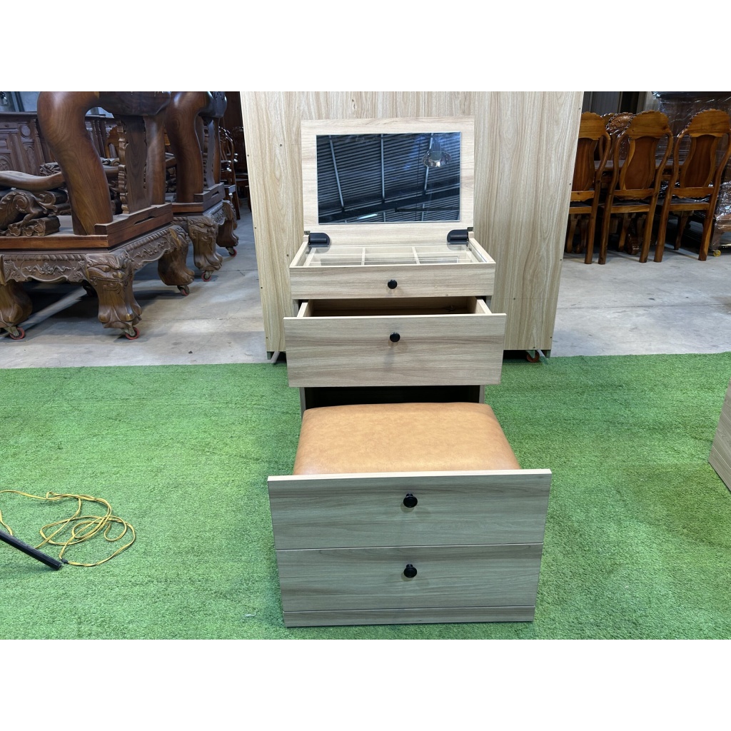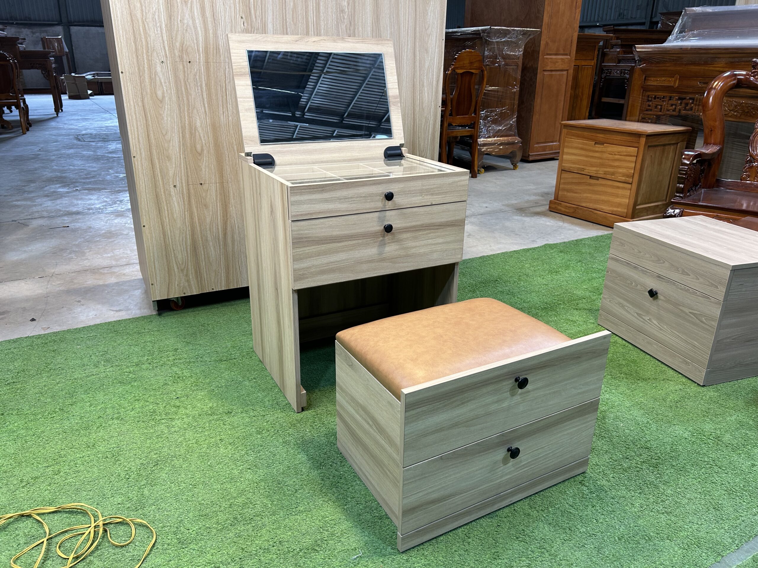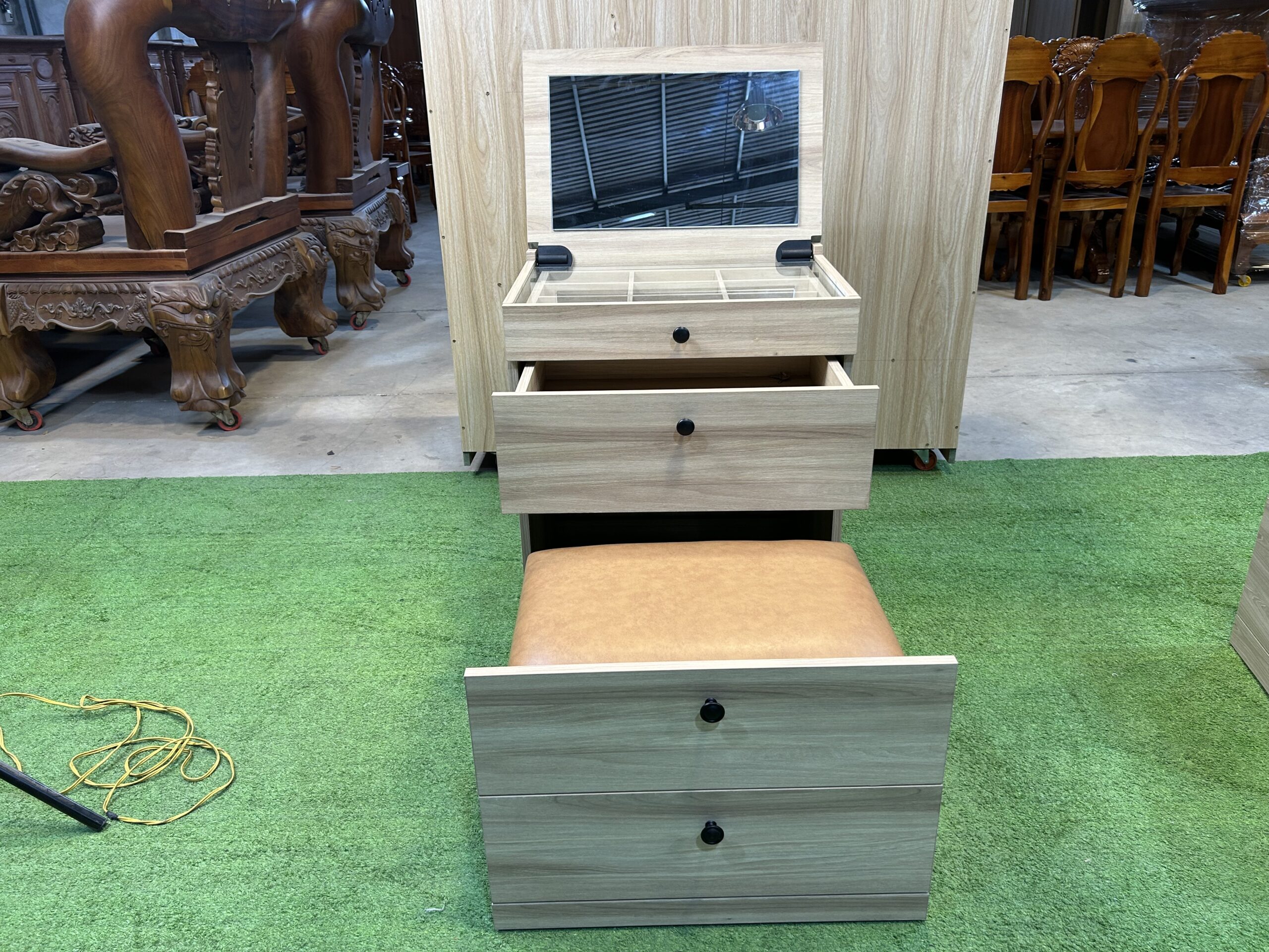 Bàn trang điểm được làm bằng gỗ MDF lõi xanh chống nước. Kiểu thông minh và có thêm cả hộc ẩn