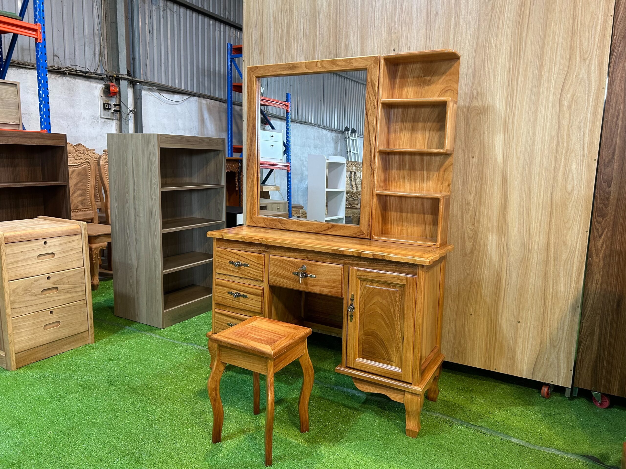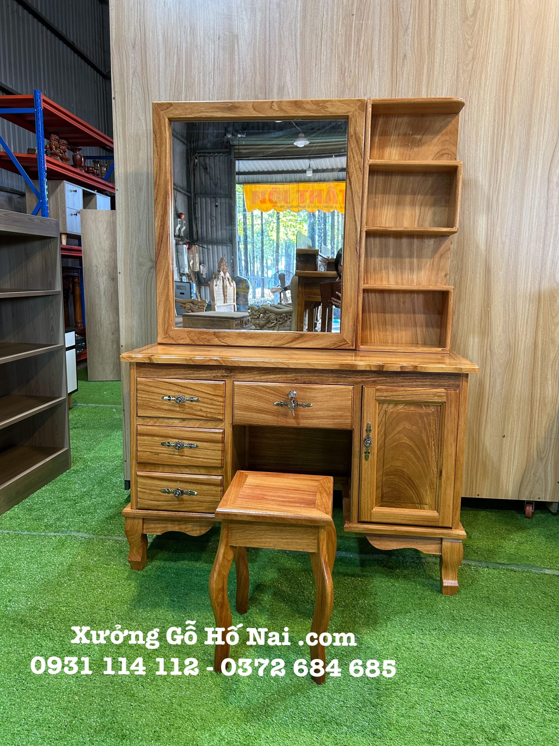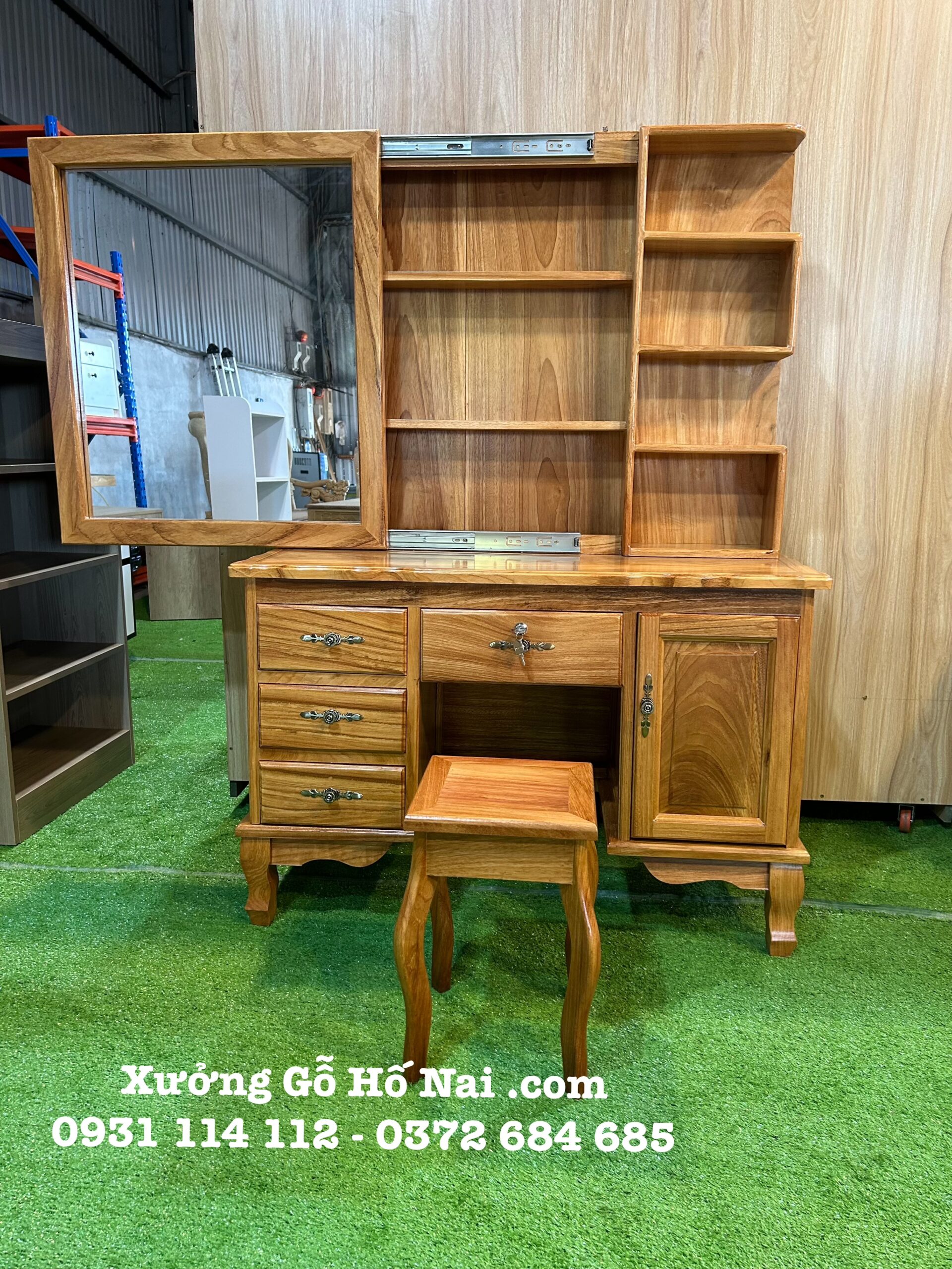 Bàn trang điểm Gõ vuông lớn cửa lùa