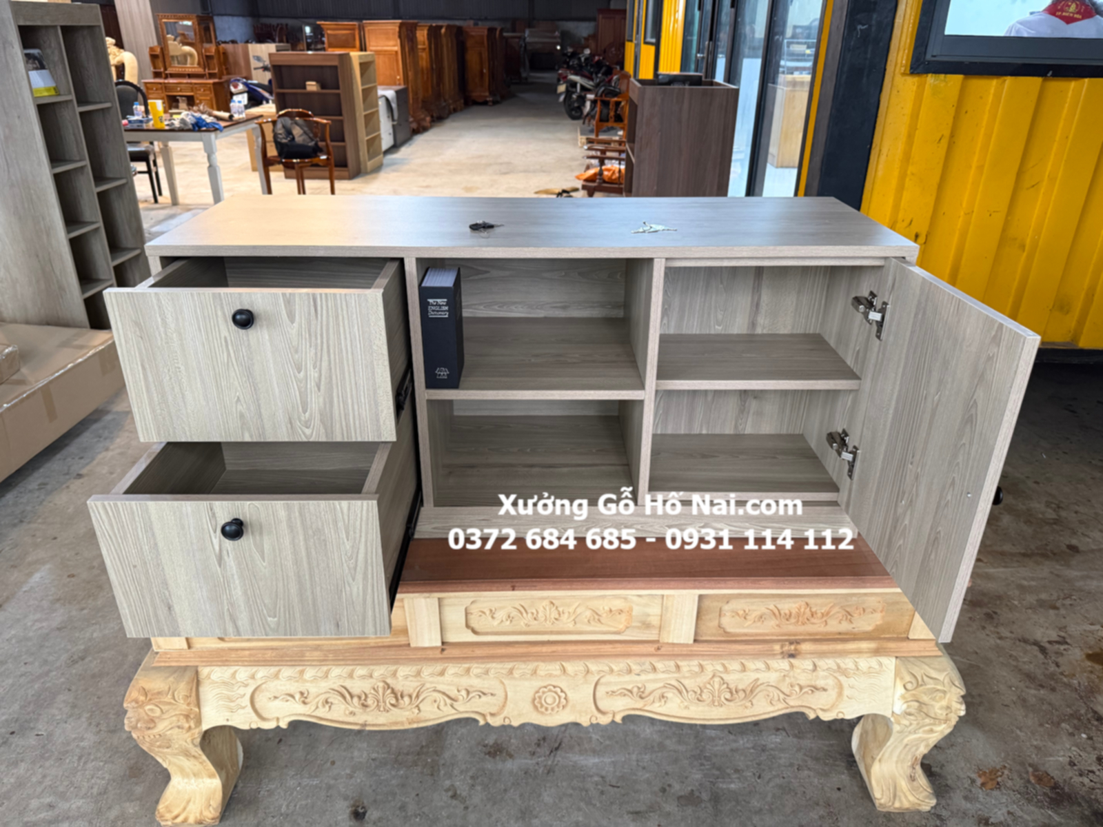 Tủ đồ gỗ mdf mẫu 44A22 được làm bằng gỗ mdf lõi xanh. Có 2 ngăn bí mật. nếu lắp thêm chân có thể thành kệ tivi