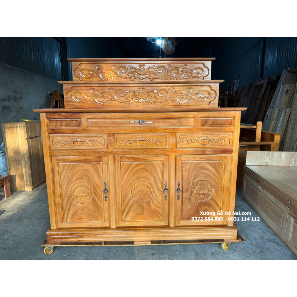 Mẫu 21B03 – Tủ thờ tam cấp gỗ gõ đỏ ngang 154 sâu 107 cao 158. Giá 23,900,000